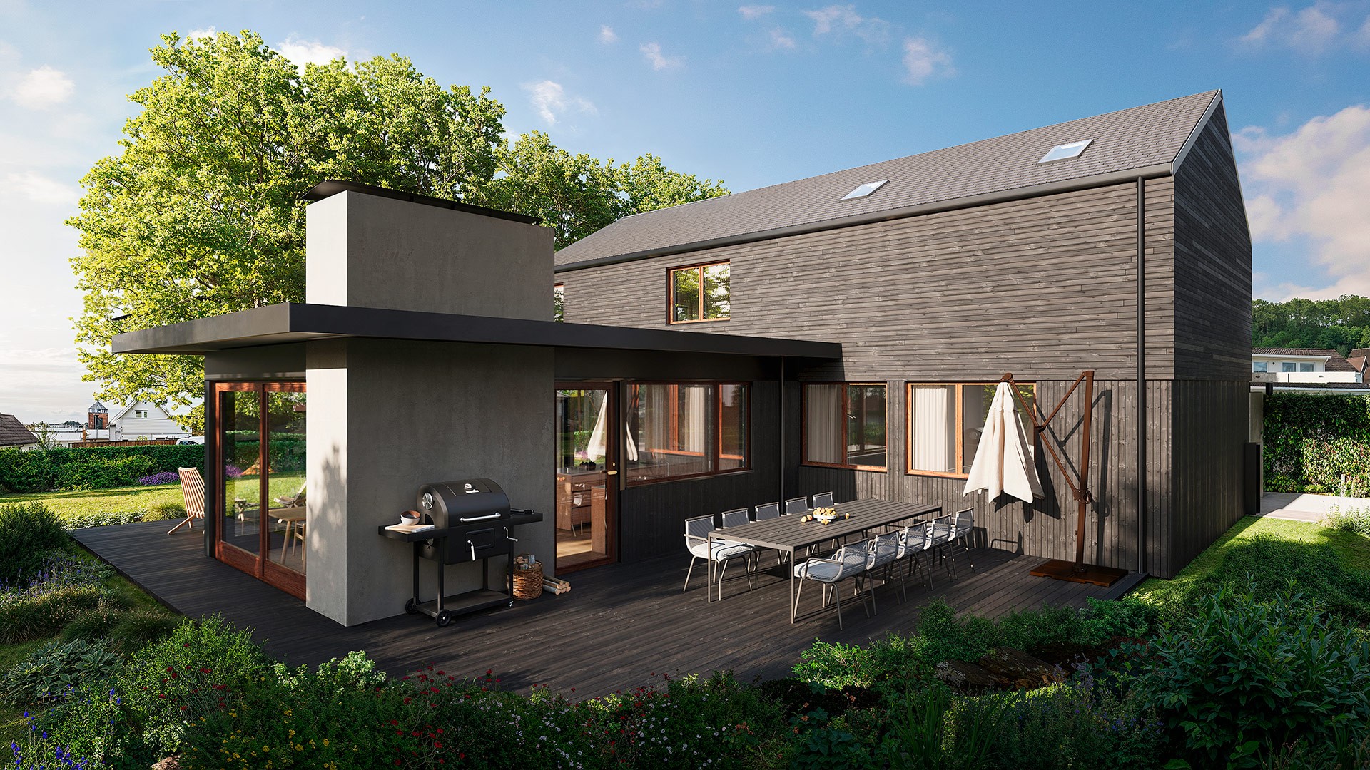 Gangaren 21 er en moderne enebolig utviklet for Norrøn Bolig / Bjerkreim Bygg, med arkitektur signert Bjørnstad AS. Prosjektet kombinerer rene, moderne linjer med et tydelig fokus på kvalitet, funksjon og helhet. 3D-visualiseringene er utarbeidet for å formidle boligens arkitektoniske grep på en realistisk og tilgjengelig måte. Lys, materialer og proporsjoner er nøye bearbeidet for å gi et presist inntrykk av hvordan boligen vil oppleves i samspill med omgivelsene. Visualiseringene gir et godt grunnlag for videre prosjektutvikling og presentasjon, og fungerer som et effektivt verktøy i kommunikasjonen mot markedet.